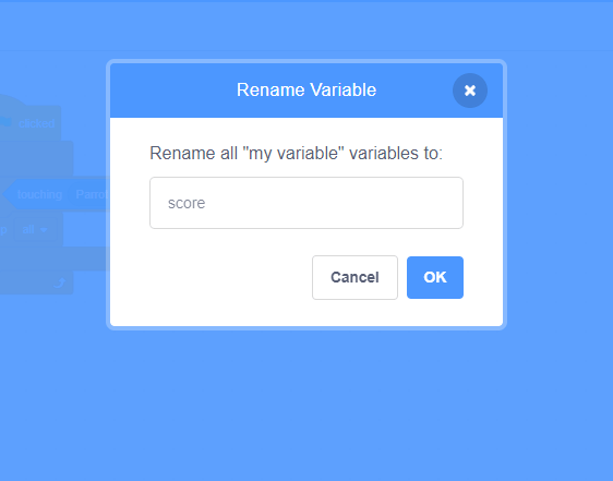 - In the popup window, type score for the name, then click OK.